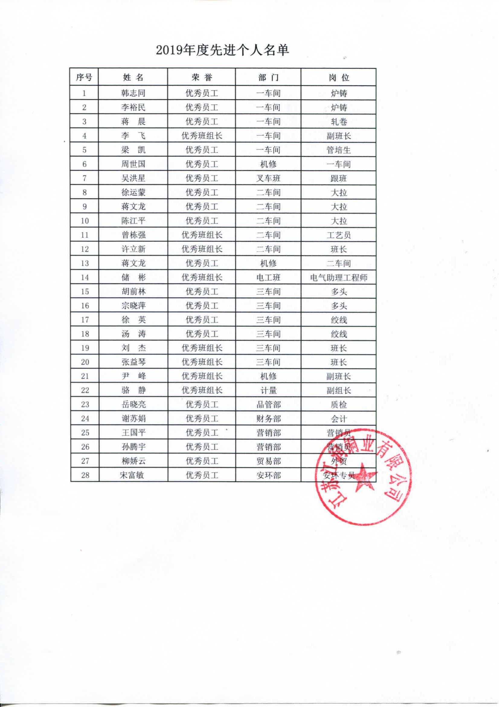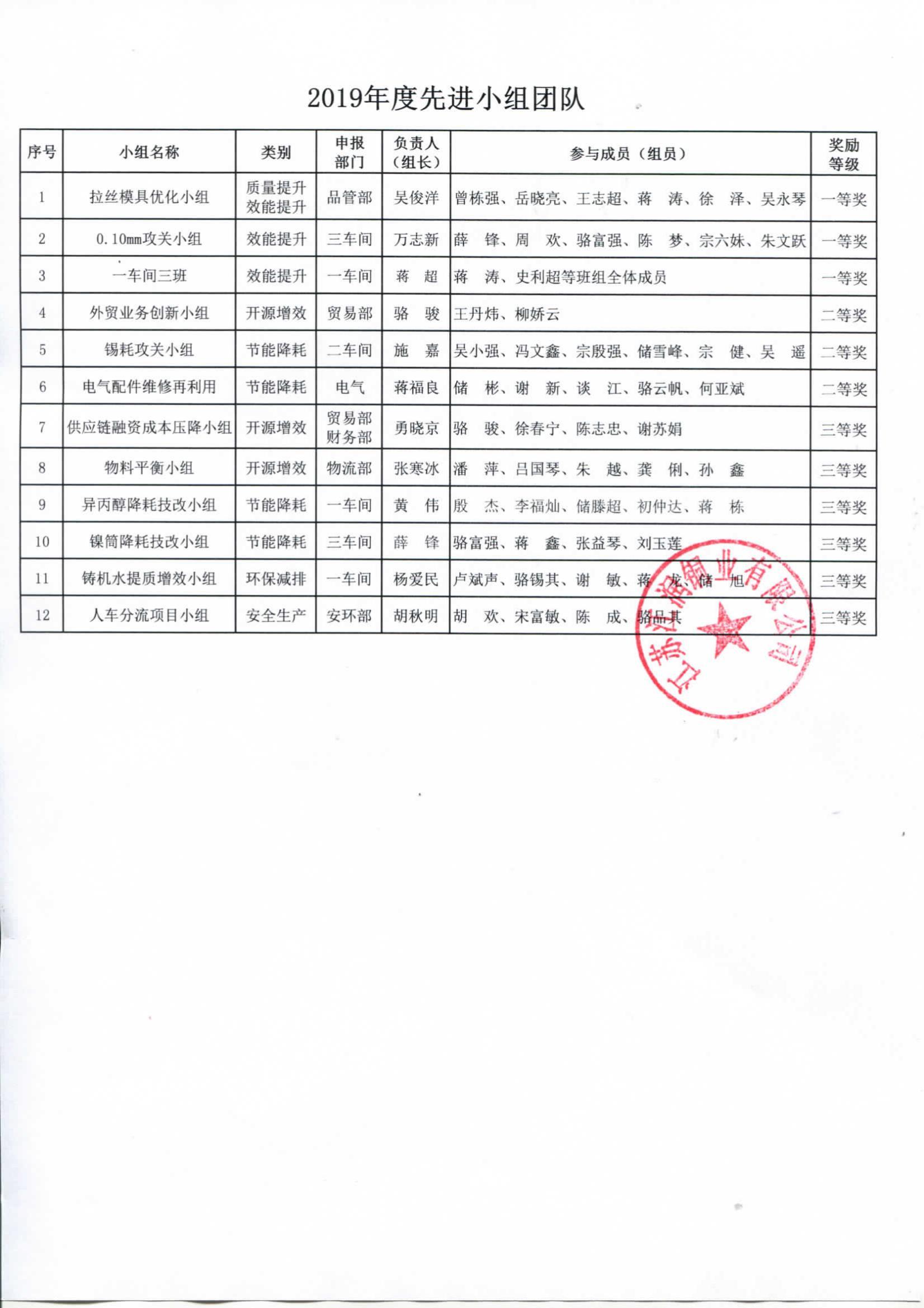 2019年度江潤銅業先進表彰
