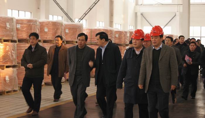 12月21日上午,在市長王中蘇的陪同下,寶應縣黨政代表團來公司參觀考察。總經理駱偉棟熱情接待了代表團一行,并介紹了公司的發展歷程和前景。代表團參觀了SCR銅桿車間、復合銅線車間、銅絞線車間。